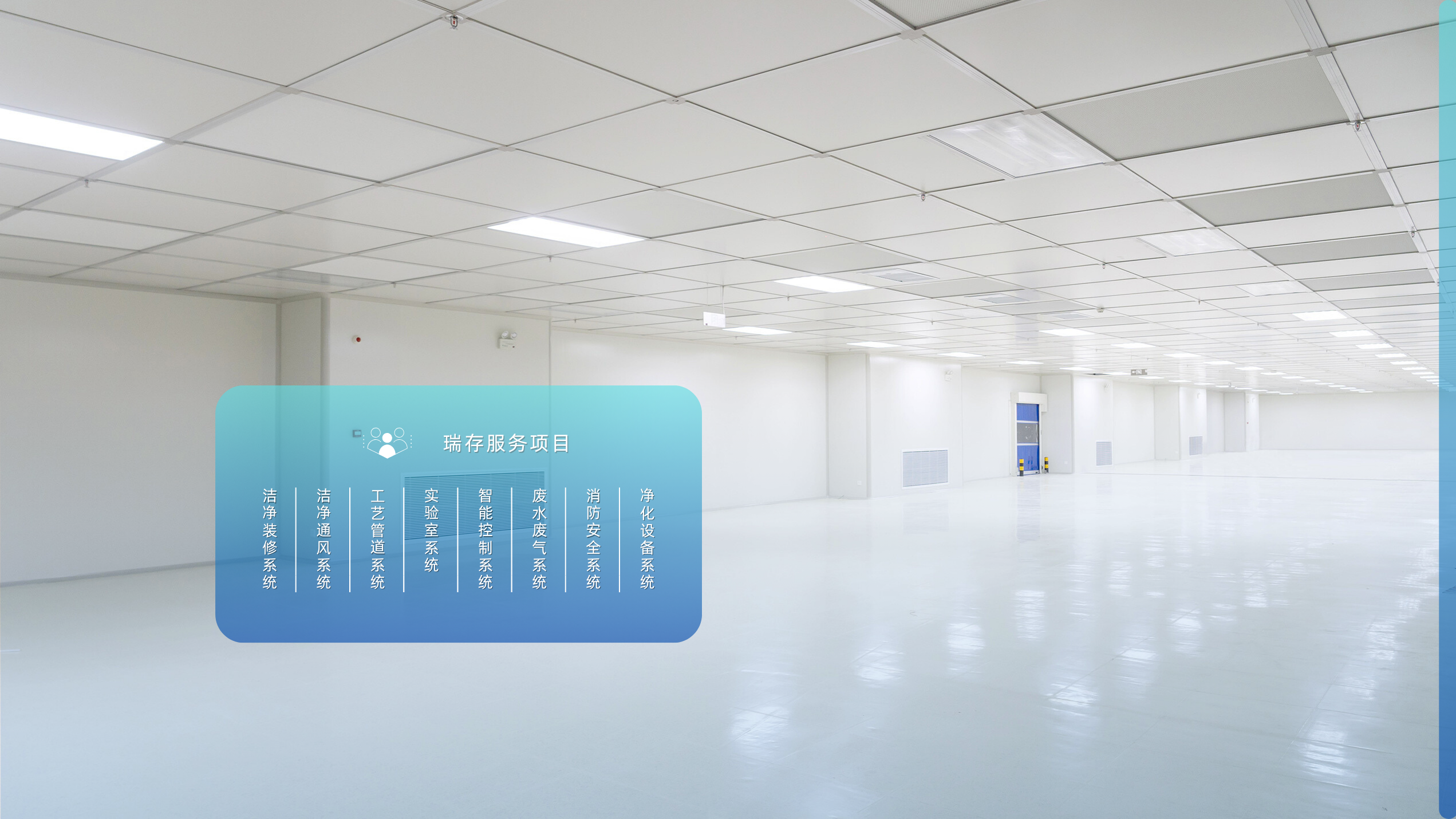 上海瑞存凈化工程有限公司是一家專業(yè)致力于潔凈廠房系統(tǒng)解決方案咨詢、設(shè)計(jì)、施工、管理等一體化服務(wù)的高科技企業(yè)。專注為客戶提供一級(jí)~十萬(wàn)級(jí)高端無(wú)塵車(chē)間,服務(wù)于電子半導(dǎo)體、觸控顯示、汽車(chē)工業(yè)、光學(xué)鏡片、生物醫(yī)藥、實(shí)驗(yàn)室、食品工業(yè)、化學(xué)工業(yè)、航空航天等諸多先進(jìn)科學(xué)科技領(lǐng)域。